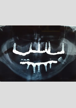 Paciente sexo masculino 62 anos, portando dentadura superior e vários dentes inferiores comprometidos. Foi indicado duas prótese fixas aparafusadas, na arcada supeior foram realizados 6 implantes e na arcada inferior 5 implantes.