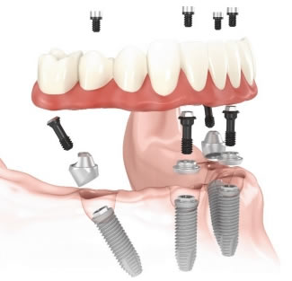 Realizando de 4 a 8 implantes é possível adaptar com firmeza uma prótese fixa aparafusada sobre a maxila e ou mandibula. No máximo, em dois dias após a instalação cirúrgica do implantes o paciente recebe a prótese aparafusada.